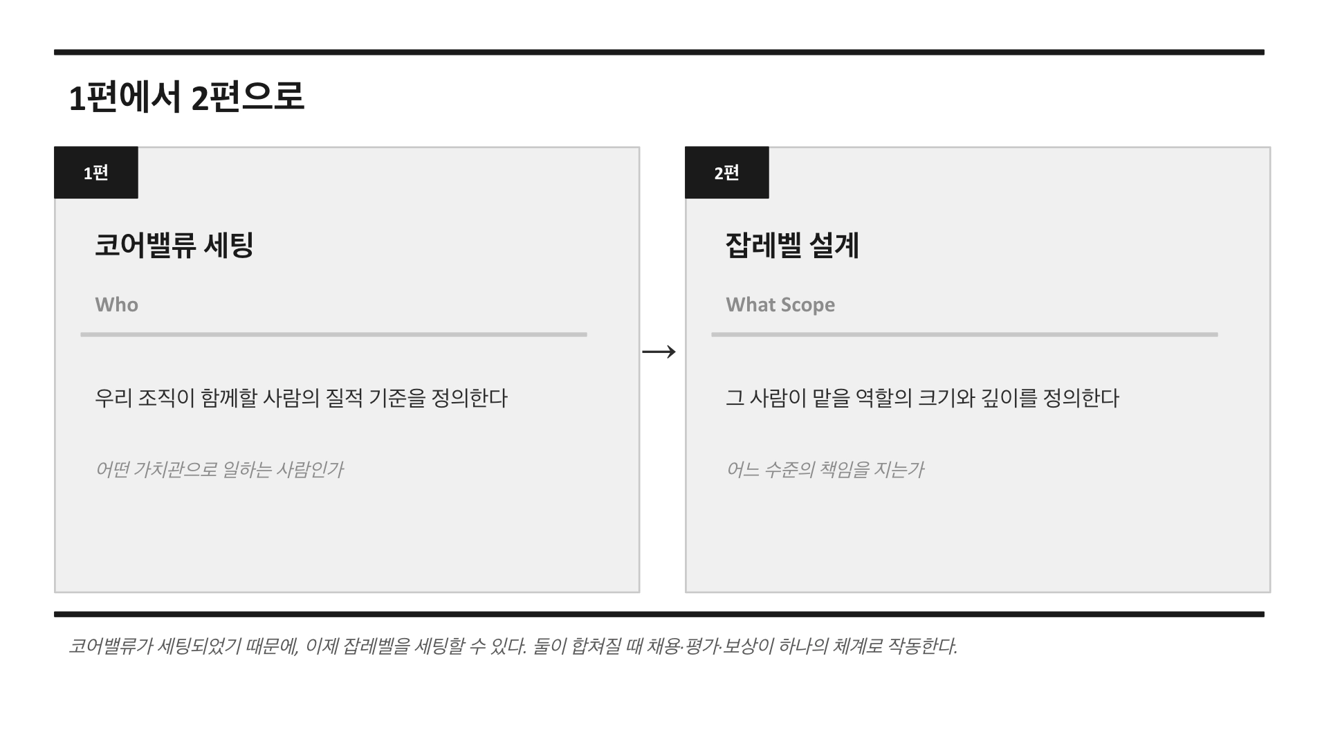 그런데 코어밸류가 세팅되자 다음 질문이 생겼다. 같은 가치관을 가진 사람들 사이에서, 누가 어느 수준의 책임을 지는가. 코어밸류는 Who를 정의했지만, 그 사람의 역할 크기는 아직 정의되지 않았다. 1편에서 이 질문을 남겼습니다. 보상은 정말 Outcome을 보고 있는가.