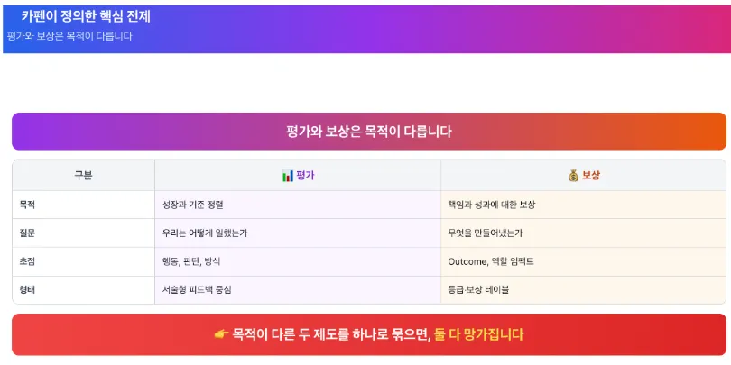 그래서 카펜은 이 기준 위에서, 평가와 보상의 역할을 명확히 나눴습니다.