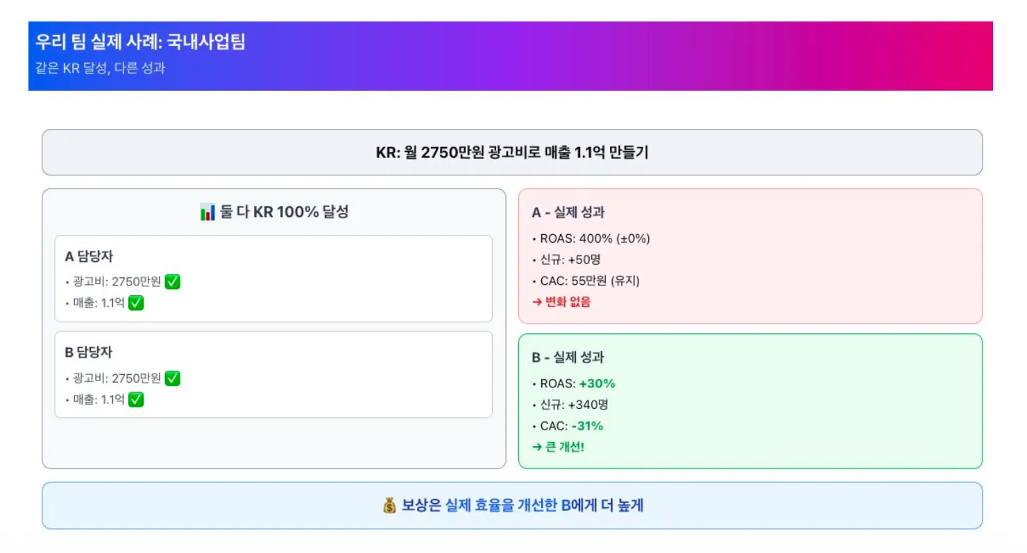 이때 확실해졌습니다.이 구조에서는 OKR도, 평가도, 보상도 제 역할을 하지 못한다는 것.